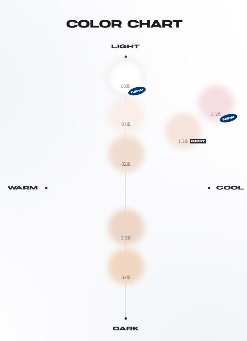 - Shades: 00 Clear, 0.5 Cool Pink, 01 Fair, 1.5 Cool Fair, 02 Light, 2.5 Ivory, 03 Natural