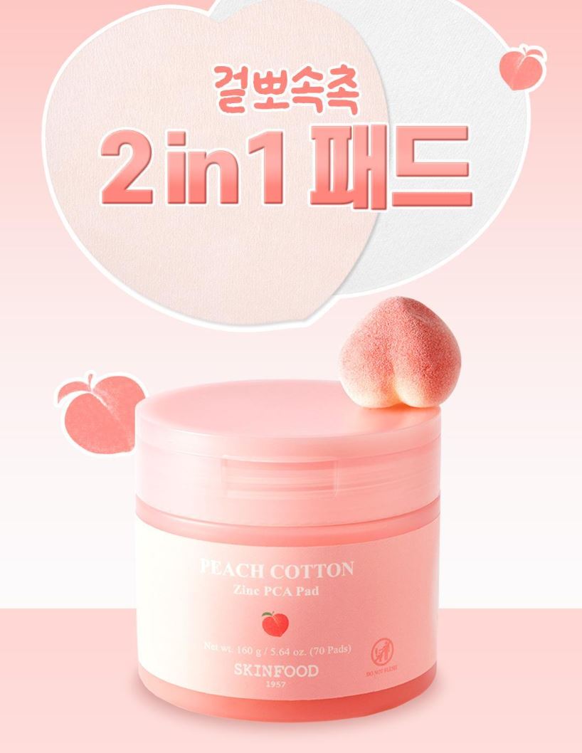 - Peach Cotton Zinc PCA Pad: Dual-texture pad with a soft peach-inspired design (70 pads / 160 g)