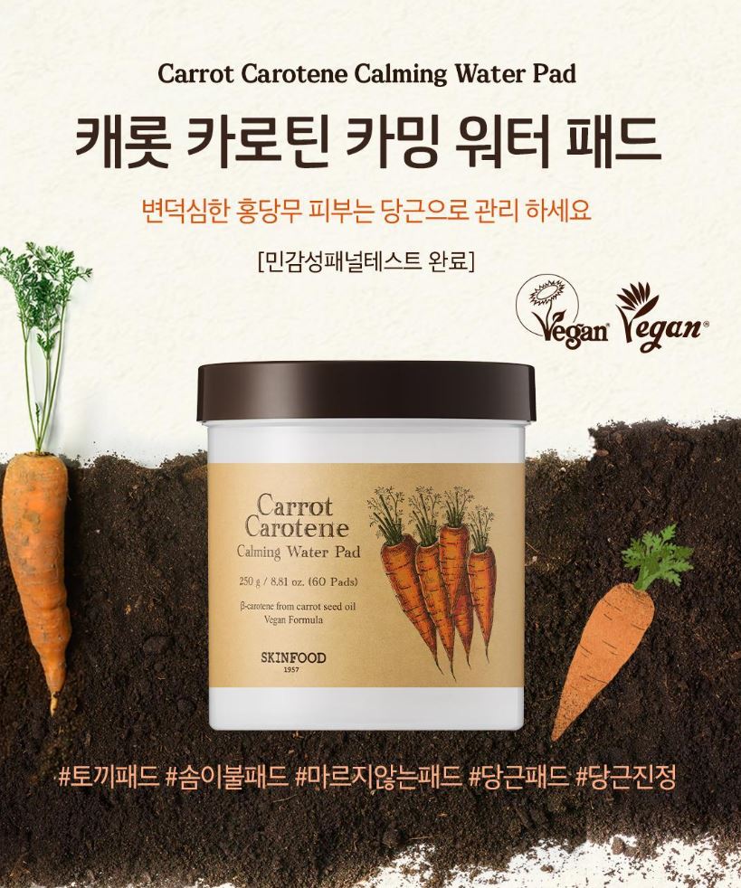 - Carrot Carotene Calming Water Pad: Watery essence with a soft, comforting touch (60 pads / 250 g)