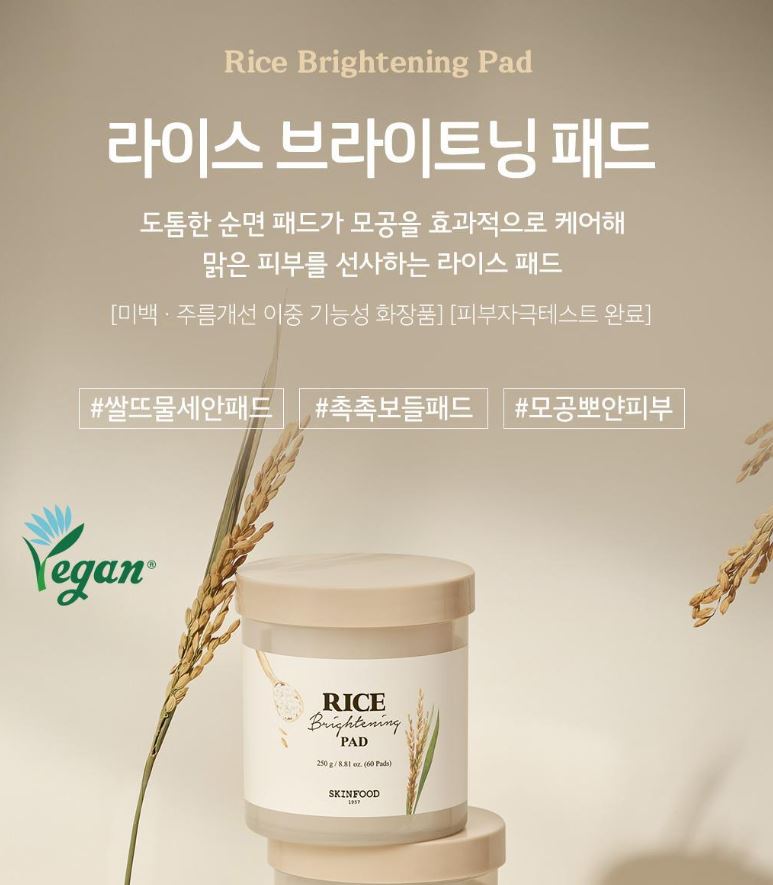 - Rice Brightening Pad: Soft-touch pad with a luminous-looking finish (60 pads / 250 g)